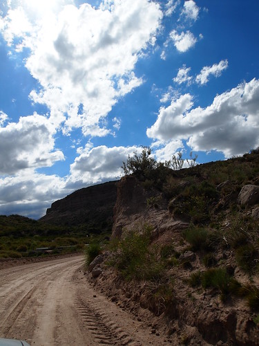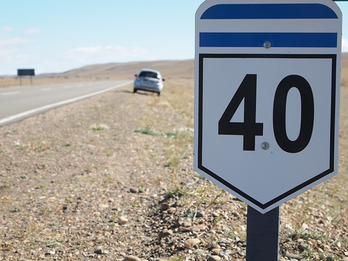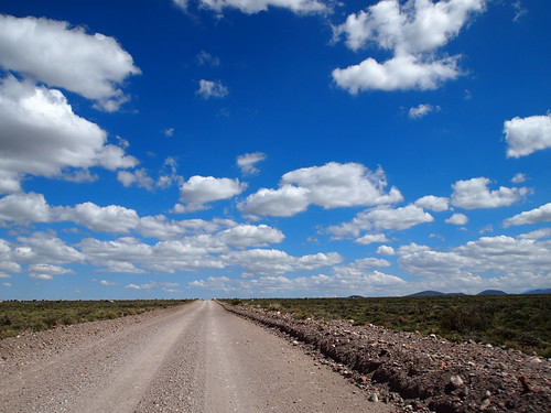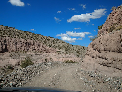 Ens despedim d’aquest encantador paisatge natural i posem rumb a Malargüe. Per arribar-hi hem de passar per la mítica ruta 40, una versió argentina de la route 66. Aquesta carretera recorre Argentina de nord a sud resseguint els andes i passant per racons molt inhòspits. És molt antiga i encara hi ha molts de trams que no estan asfaltats, en el seu lloc estan coberts de grava i en alguns casos de grava molt gran o pedres.
