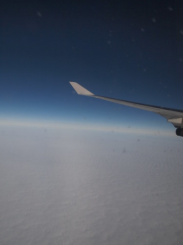 Inesperadament s’afegeix un nou lloc a la nostra ruta, l’avio d’Argentina a Australia passa per sobre el pol sud veien desde l’avió el blanc impolut del gel del pol.