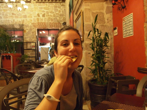 Fent cas a la lliço de menjar el que els altres menjen, vam apendre una altre lliço. Preguntar que és el que mengen. Vam acabar menjat una espècie de bocabit gegant amb pell de porc per sobre, no gaire agradable.