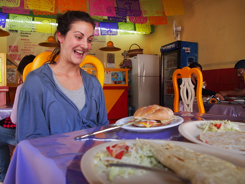 Fent cas a la lliço de menjar el que els altres menjen, vam apendre una altre lliço. Preguntar que és el que mengen. Vam acabar menjat una espècie de bocabit gegant amb pell de porc per sobre, no gaire agradable.